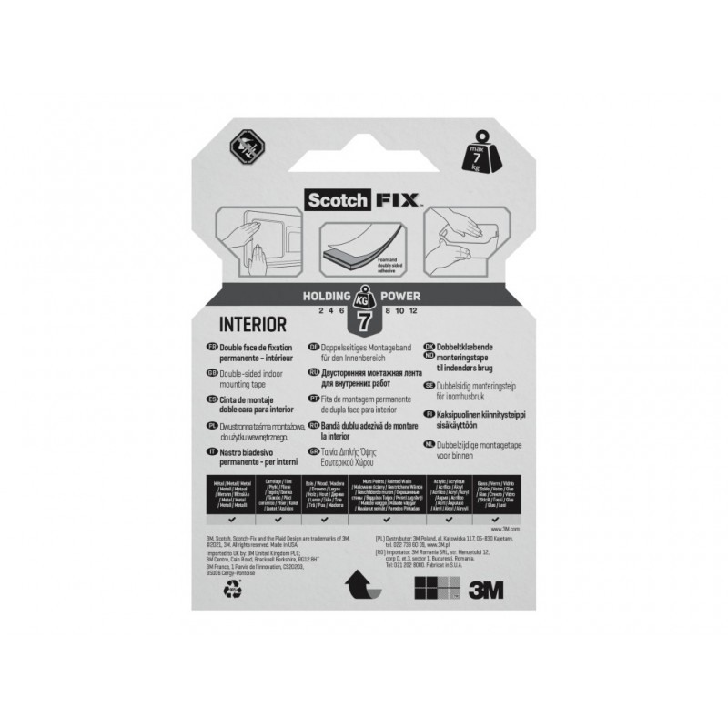 Banda dublu adeziva montare suprafete interioare Scotch-Fix™ 3M, 19 mm x 1.5 m