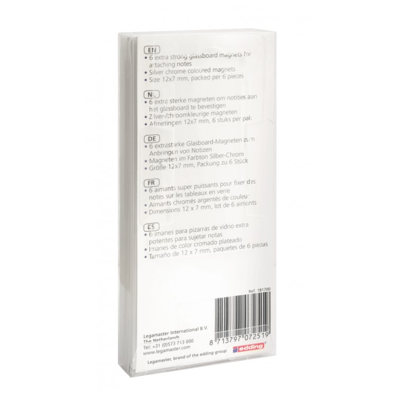 Set 6 magneți Glassboard Legamaster super strong pentru table magnetice din sticla. Dimensiune 12x7 mm. Culoare gri.