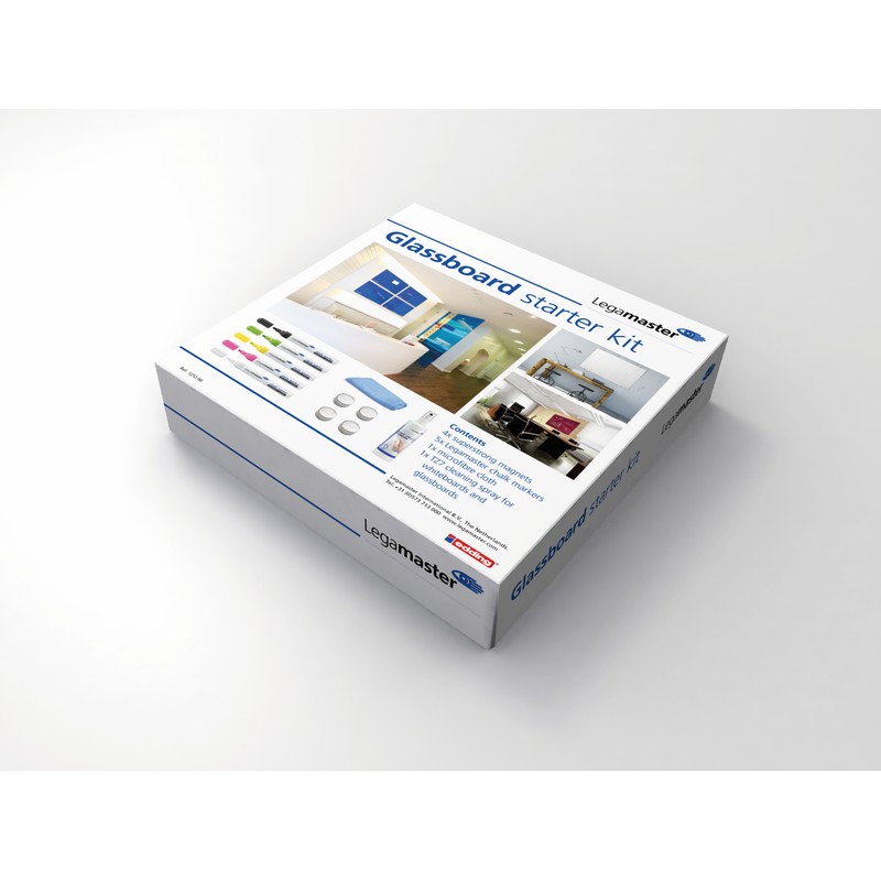Set accesorii pentru table din sticla Legamaster ce contine: 6 markere, 4 magneti, 1 laveta, 1 sticla solutie curtat tabla.
