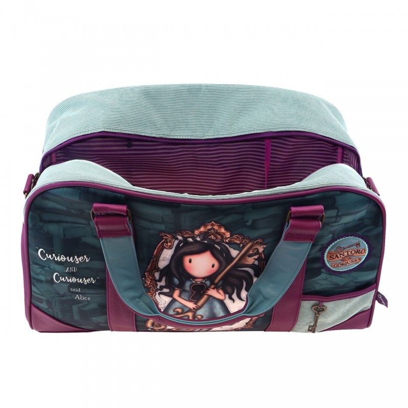 De la excursii de weekend la sesiuni de sală, geanta noastră de weekend Curiosity este o soluție polivalentă. Dispune de un compartiment principal spațios, cu un buzunar exterior la îndemână pentru a lua usor obiectele. Purtați in mâna cu cele două mânere sau peste umăr folosind cureaua reglabilă. Geanta este finisată cu velur albastru deschis și lucrarea de artă unică de smarald Curiosity.