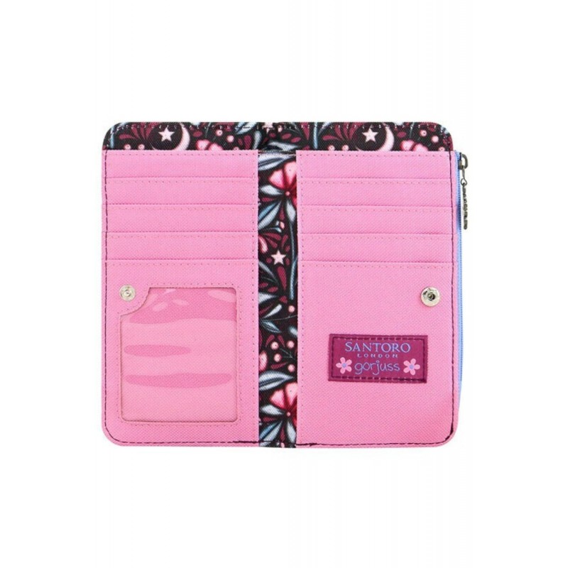 Portofelul ‘Fairy Dusk’ este combinatia perfecta intre magia padurii si functionalitate. Acest portofel frumos proiectat prezinta o arta captivanta Gorjuss si un imprimeu stilat cu model repetitiv. In interior, portofelul este organizat cu atentie, avand multiple sloturi pentru carduri, perfect pentru a-ti pastra cardurile de credit, ID-urile si notitele aranjate ordonat.