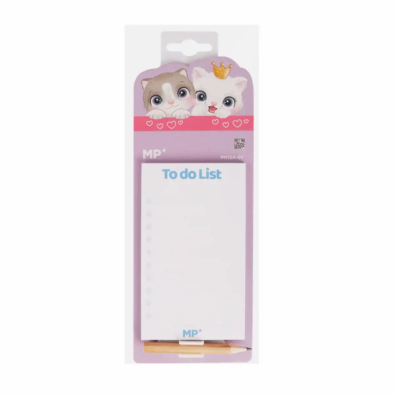 Bloc notes cu magnet si creion inclus, decorat cu pisicute dragute.