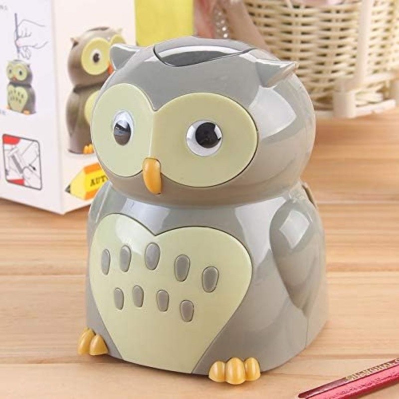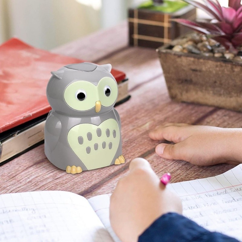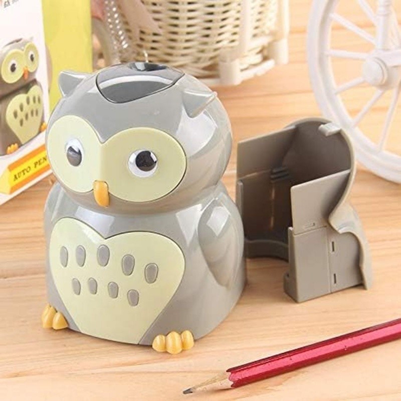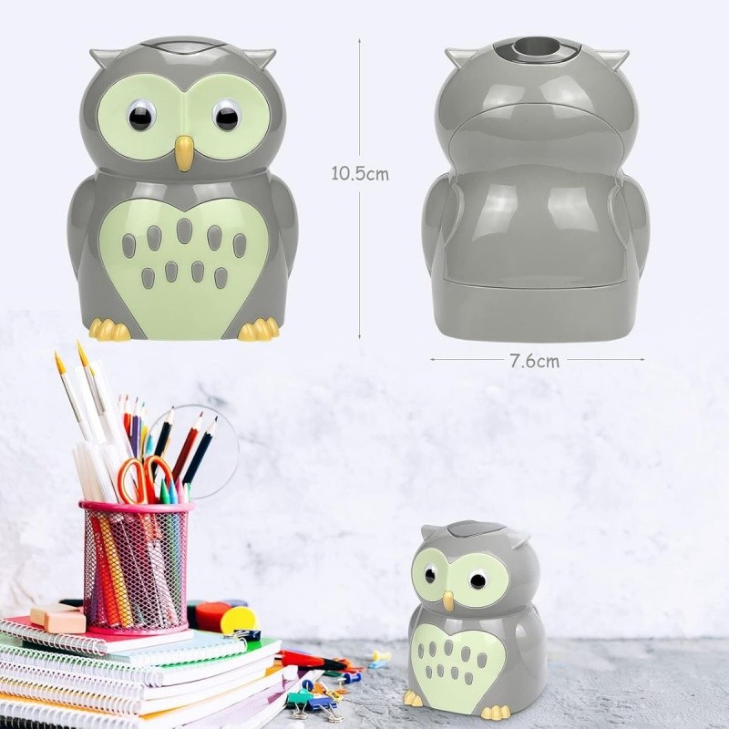 Ascutitoare electrica Eagle EG-5019, alimentare 4 baterii AA neincluse, 2 orificii, 6-8mm, model bufnita, plastic, verde