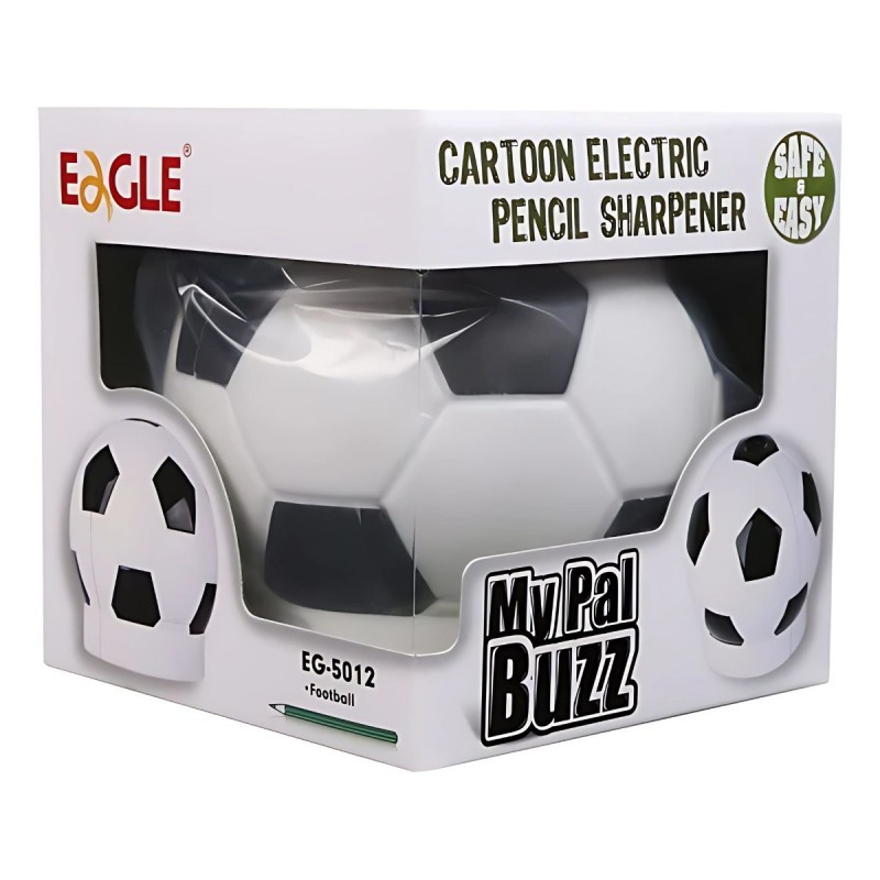 Ascutitoare electrica Eagle EG-5012, alimentare 4 baterii AA neincluse, 1 orificiu, 8mm, model minge fotbal, plastic, alb-negru