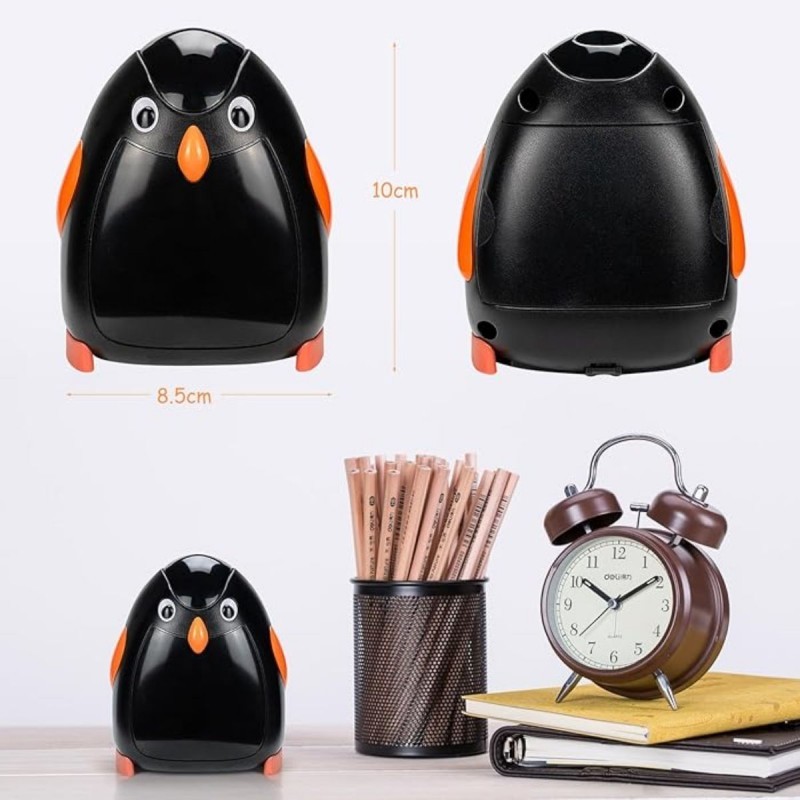 Ascutitoare electrica Eagle EG-5008, alimentare 4 baterii AA neincluse, 1 orificiu, 8mm, model pinguin, plastic, negru