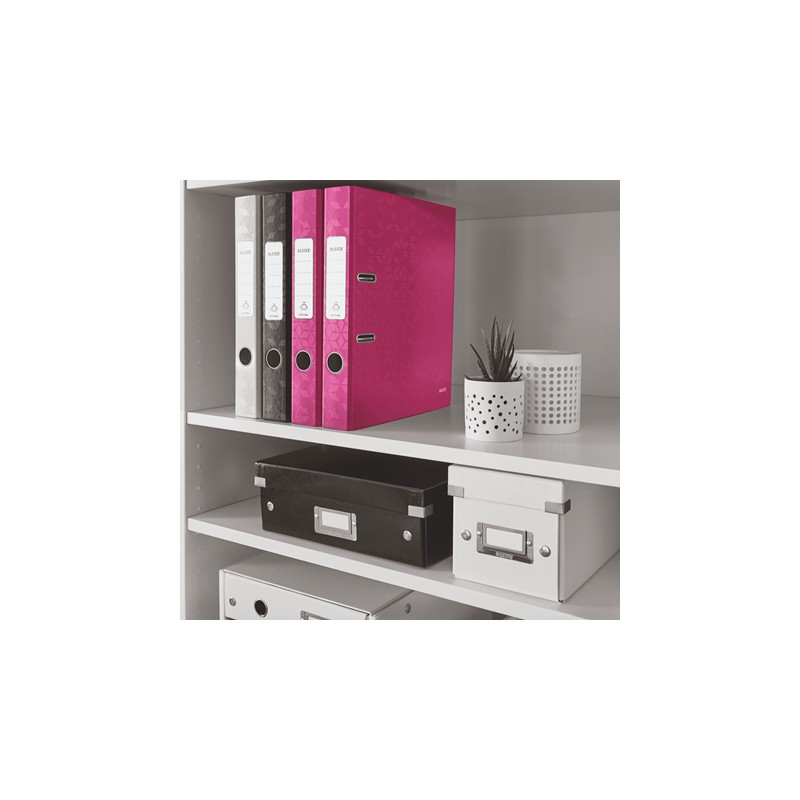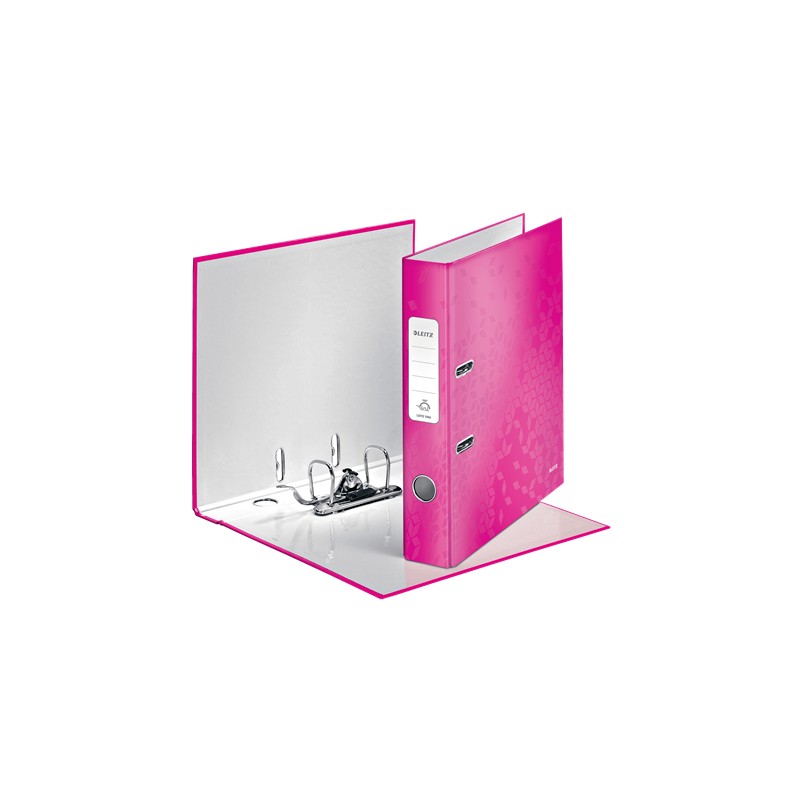 Biblioraft Leitz 180° WOW, carton laminat, partial reciclat, FSC, A4, 52 mm, roz