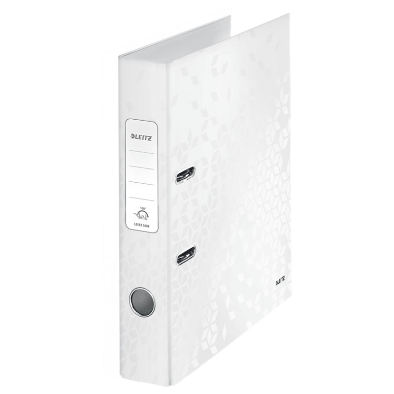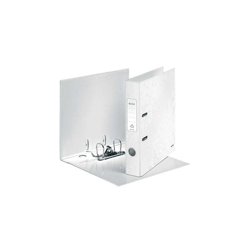 Biblioraft Leitz 180° WOW, carton laminat, partial reciclat, FSC, A4, 52 mm, alb