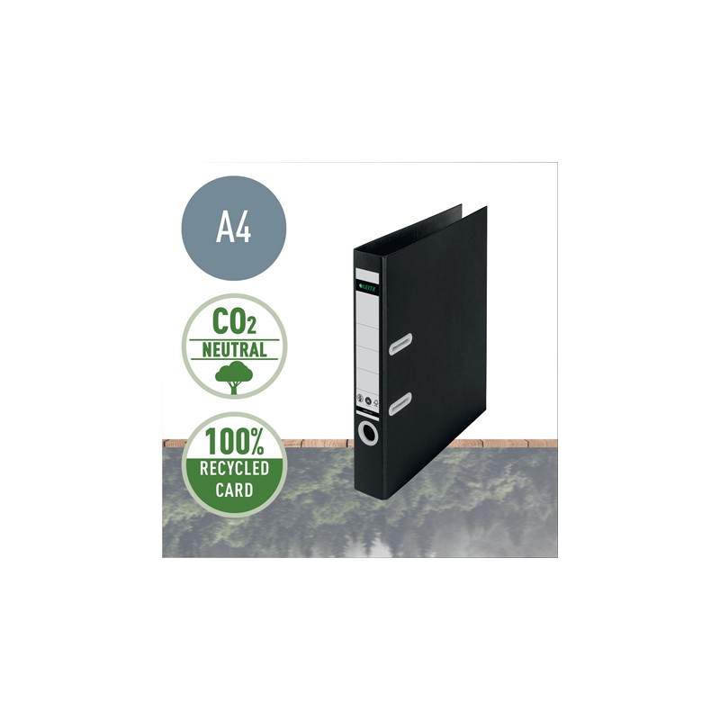 Biblioraft Leitz 180° Recycle, carton reciclat, A4, 50 mm, negru