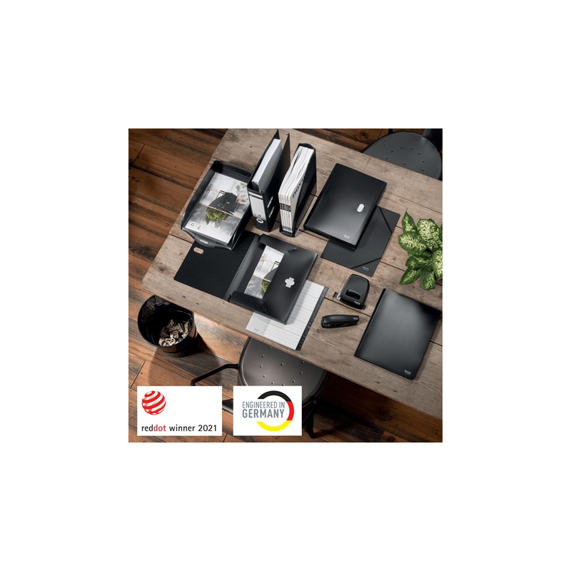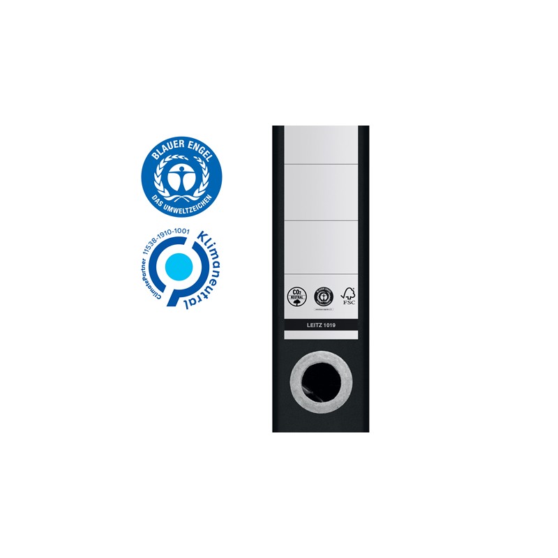 Biblioraft Leitz de calitate superioară fabricat din materiale reciclate ce pot fi demontate și valorificate complet. Format A4 și cotor de 50 mm. Este 100% reciclabil, având un impact neutru asupra mediului și fiind certificat FSC și Blue Angel.