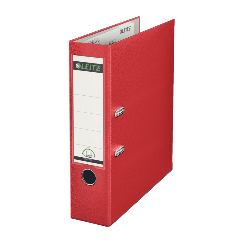 Biblioraft Leitz 180°, PP, partial reciclat, FSC, A4, 80 mm, rosu