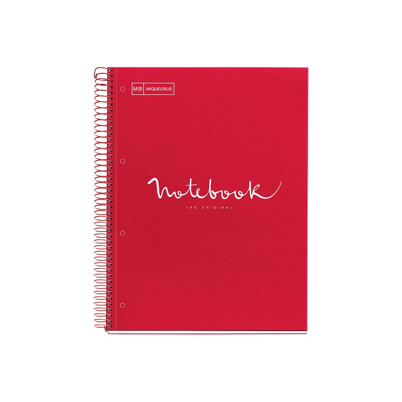 Caiet cu spira, Miquelrius, Emotion, A4, dictando, 80 file, coperta carton dur, rosu