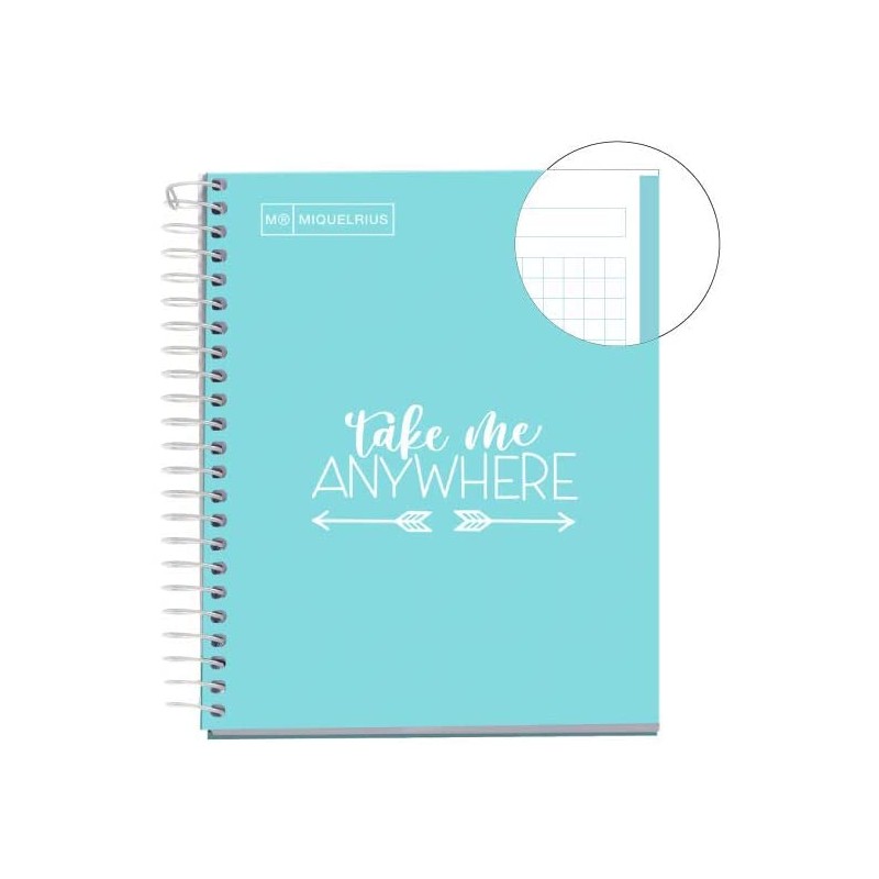Caiet cu spira Miquelrius Messages, A5, matematica, 100 file, coperta carton dur plastifiat, bleu