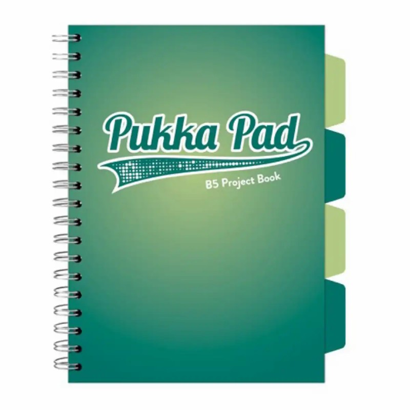 Caiet B5 cu spira si separatoare Pukka Pad Project Book, 200 file, matematica, verde