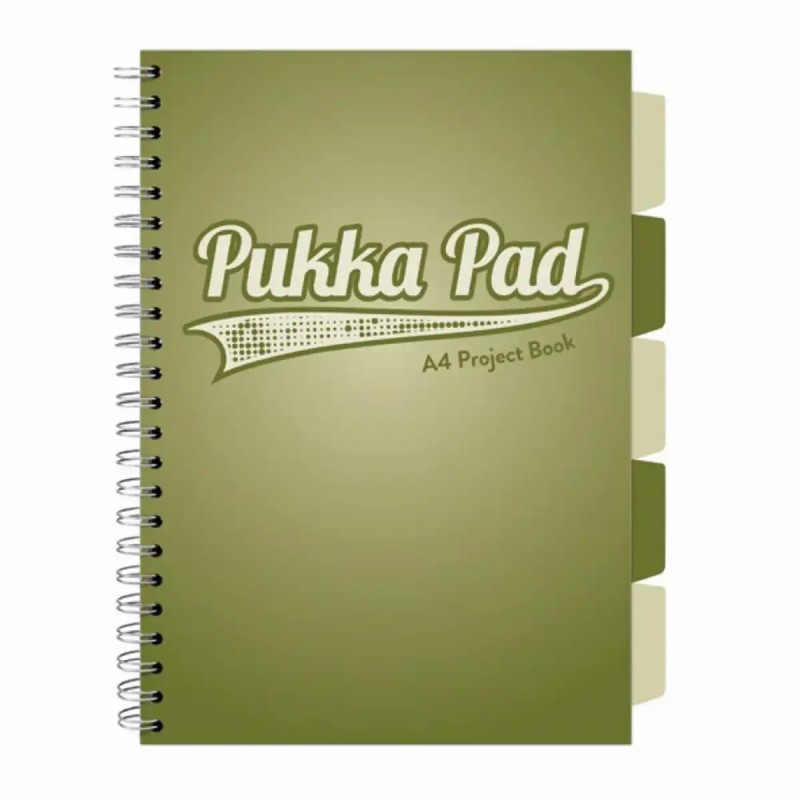 Caiet A4 cu spira si separatoare Pukka Pad Project Book, 200 file, matematica, kaki