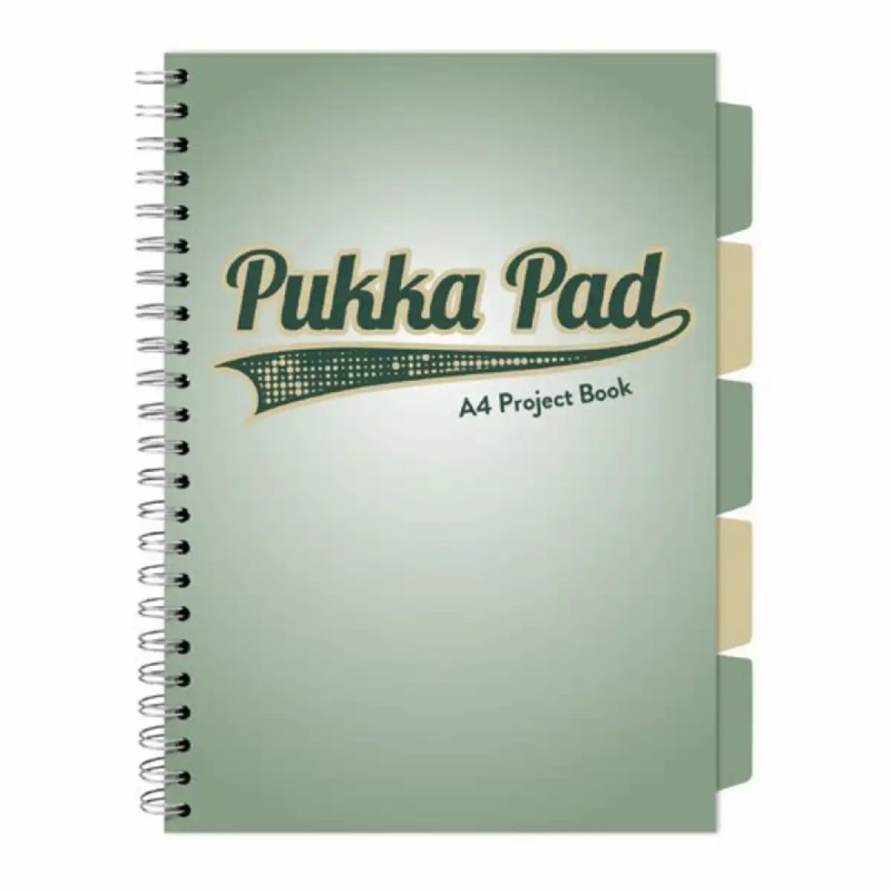 Caiet A4 cu spira si separatoare Pukka Pad Project Book, 200 file, matematica, vernil
