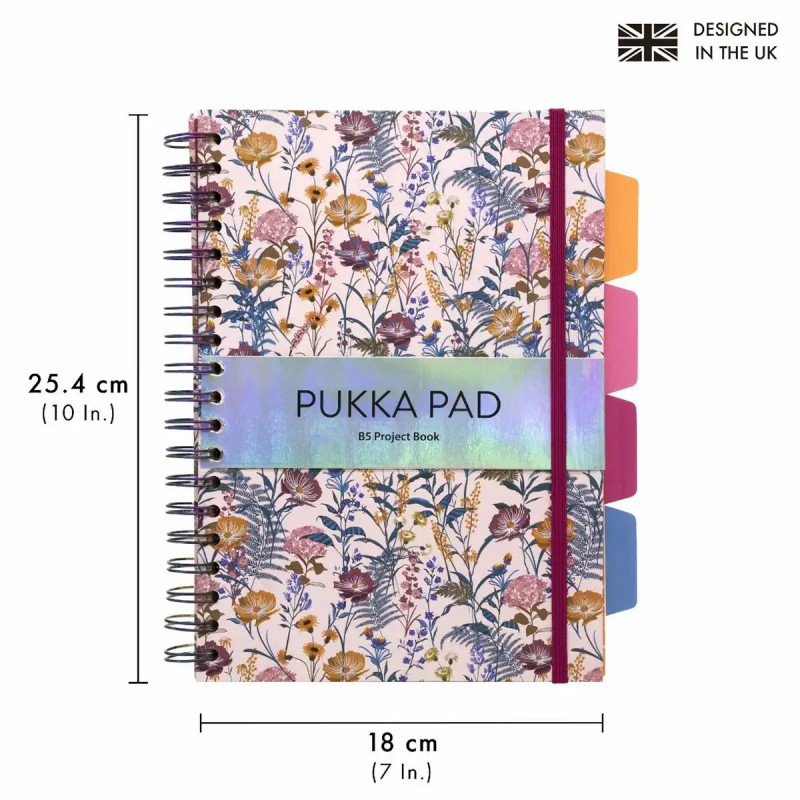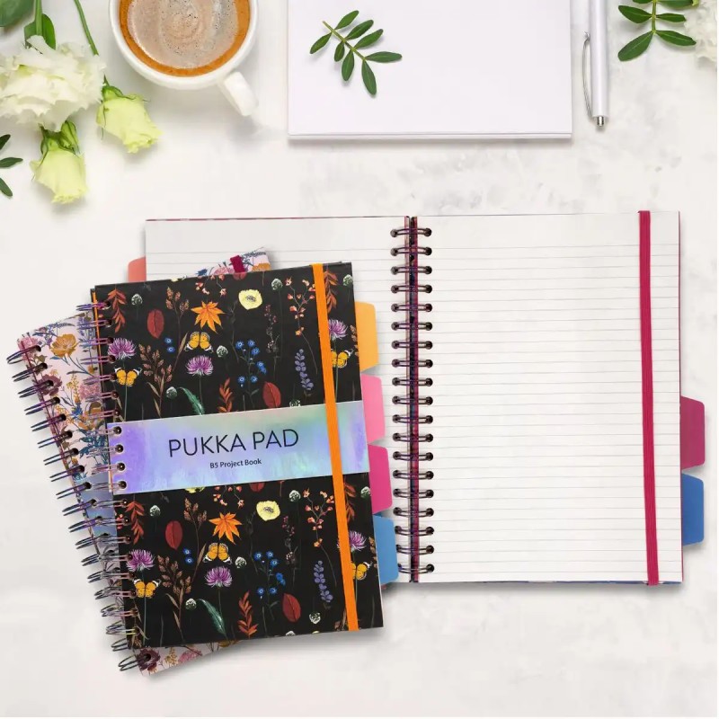Caiet B5 cu spira si separatoare Pukka Pad Bloom, 200 file, dictando, microperforatii, multicolor