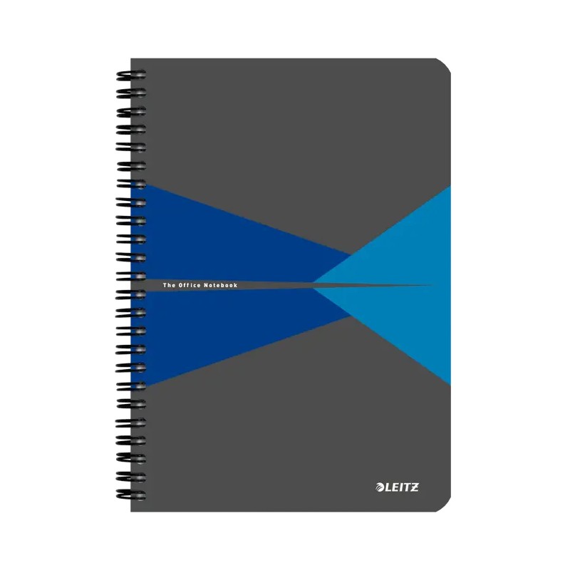 Caiet LEITZ Office, carton laminat, FSC, reciclabil, A5, 90 coli, cu spira, dictando, albastru