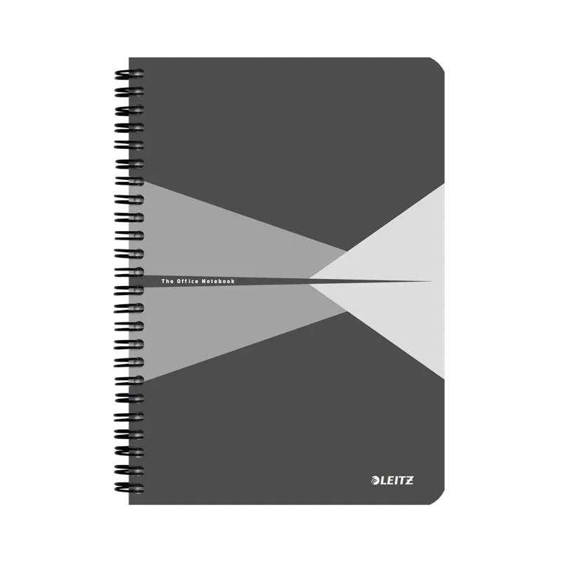 Caiet LEITZ Office, carton laminat, FSC, reciclabil, A5, 90 coli, cu spira, dictando, gri