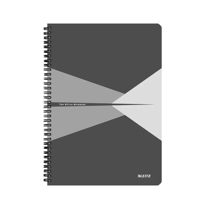 Caiet Leitz Office, carton laminat, FSC, reciclabil, A4, 90 coli, cu spira, matematica, gri