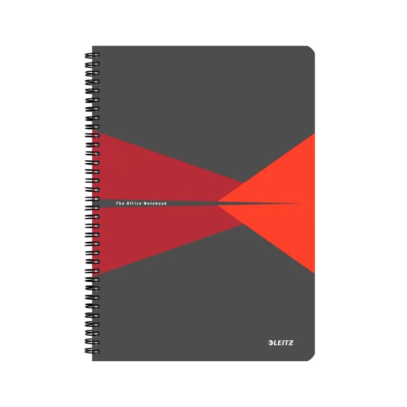 Caiet Leitz Office, carton laminat, FSC, reciclabil, A4, 90 coli, cu spira, dictando, rosu