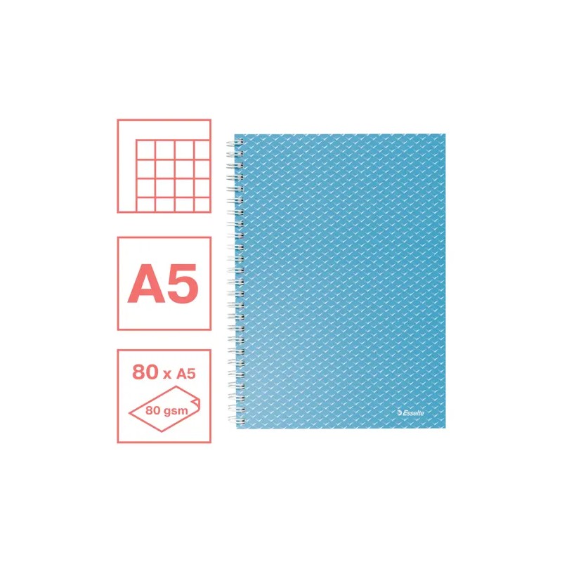 Caiet de birou Esselte Colour'Breeze, carton, reciclabil, certificare FSC, A5, 80 coli, cu spira, matematica, albastru