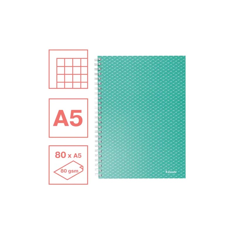 Caiet de birou Esselte Colour'Breeze, carton, reciclabil, certificare FSC, A5, 80 coli, cu spira, matematica, verde