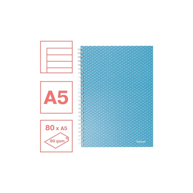 Caiet de birou Esselte Colour'Breeze, carton, reciclabil, certificare FSC, A5, 80 coli, cu spira, dictando, albastru