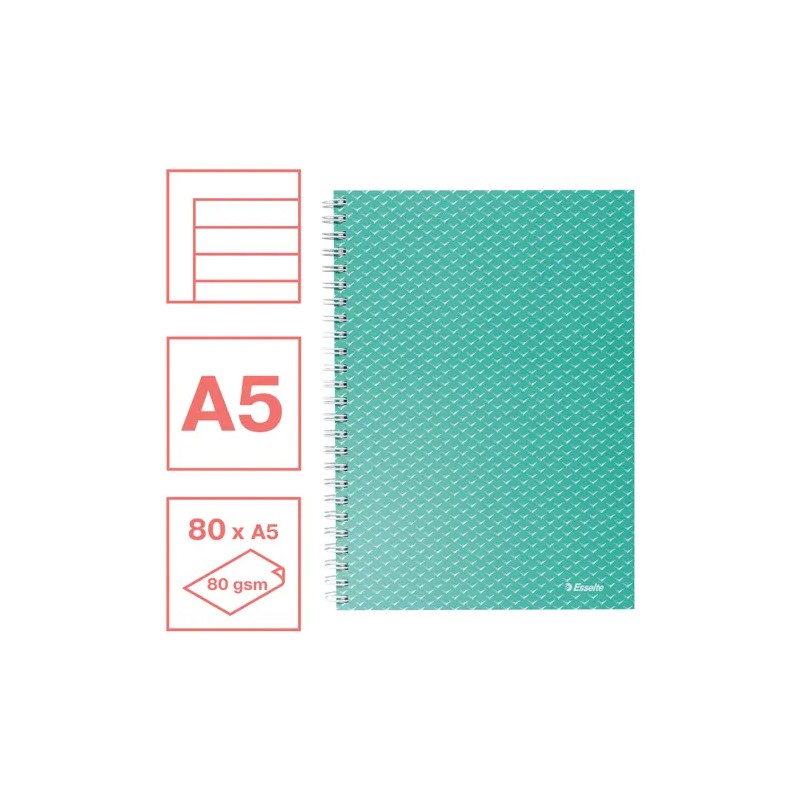 Caiet de birou Esselte Colour'Breeze, carton, reciclabil, certificare FSC, A5, 80 coli, cu spira, dictando, verde
