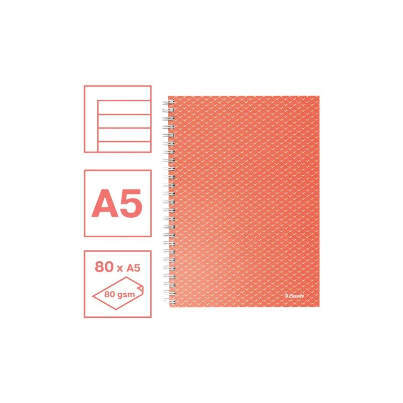 Caiet de birou Esselte Colour'Breeze, carton, reciclabil, certificare FSC, A5, 80 coli, cu spira, dictando, corai