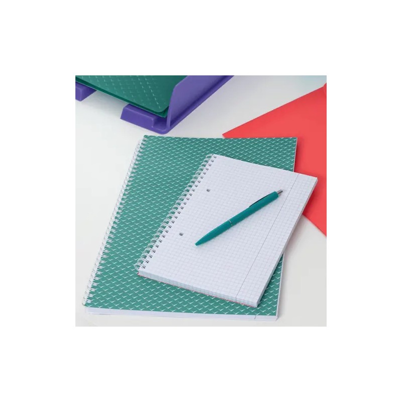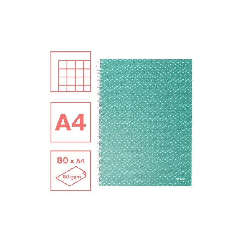 Caiet de birou Esselte Colour'Breeze, carton, reciclabil, certificare FSC, A4, 80 coli, cu spira, matematica, verde