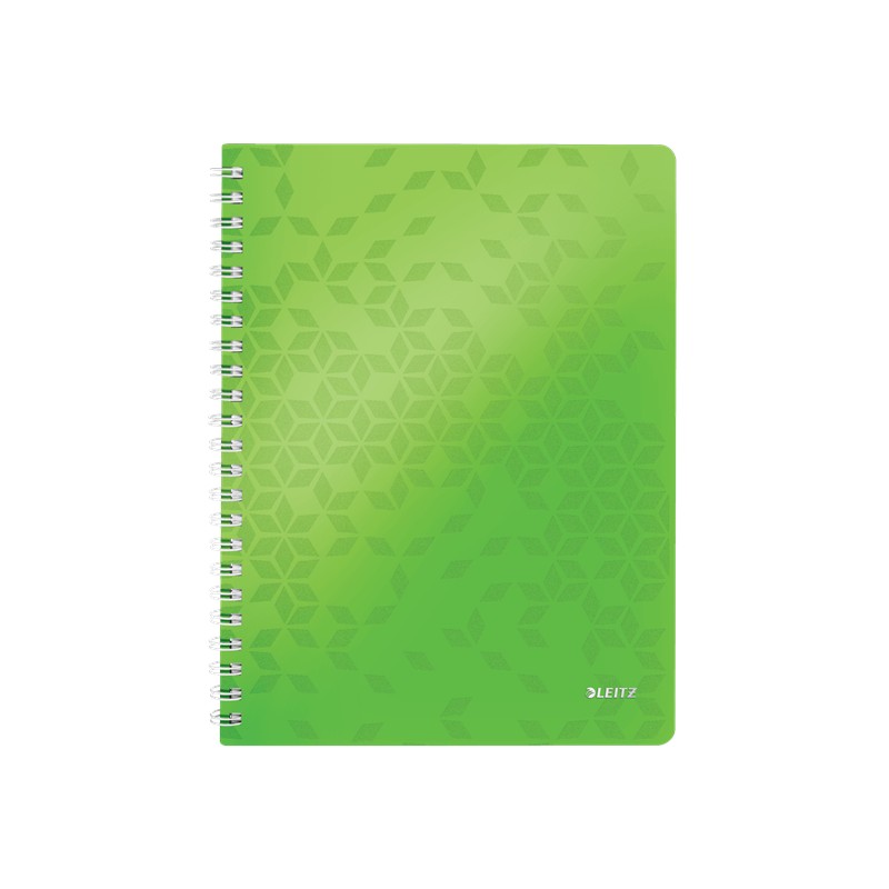 Caiet de birou LEITZ WOW, PP, A4, 80 coli, cu spira, matematica, verde