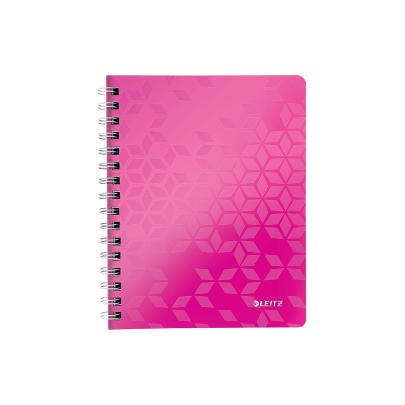 Caiet de birou LEITZ WOW, PP, A5, 80 coli, cu spira, dictando, roz
