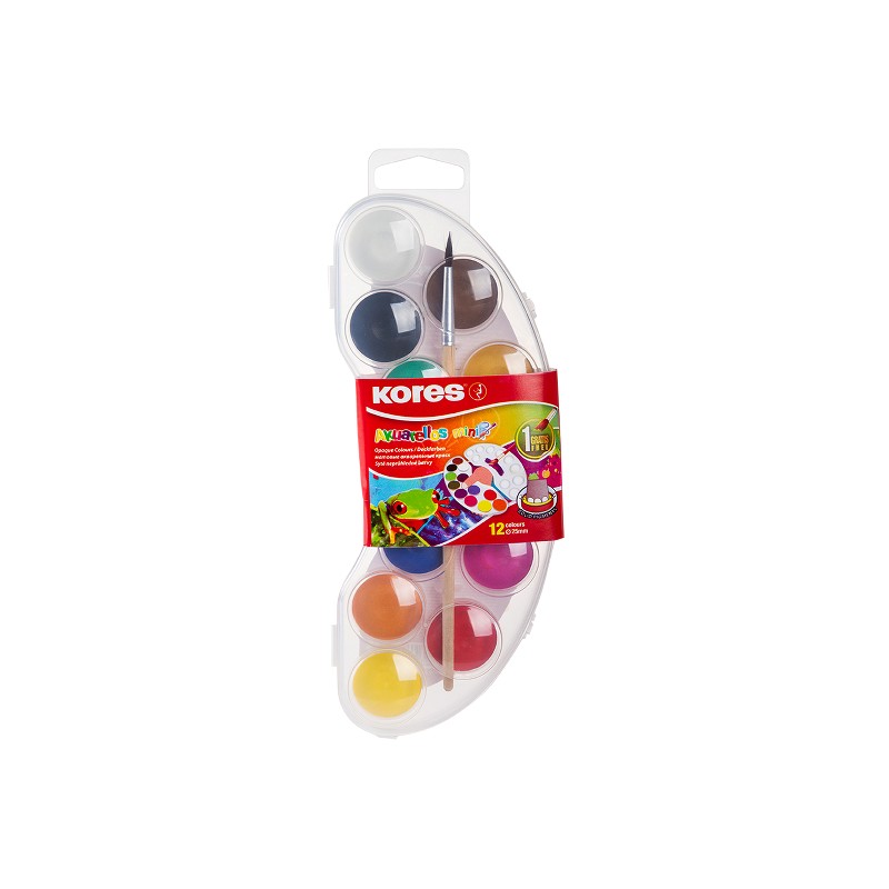 Acuarele Kores Akuarellos Mini, diametru pastila25 mm, 12 culori/set, pensula inclusa.