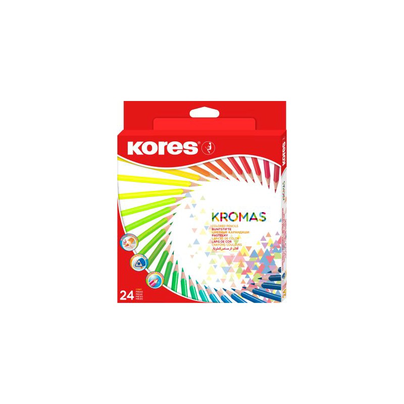 Creioane colorate Kores Kromas, triunghiulare, grosime 3 mm, 24 culori/cutie.