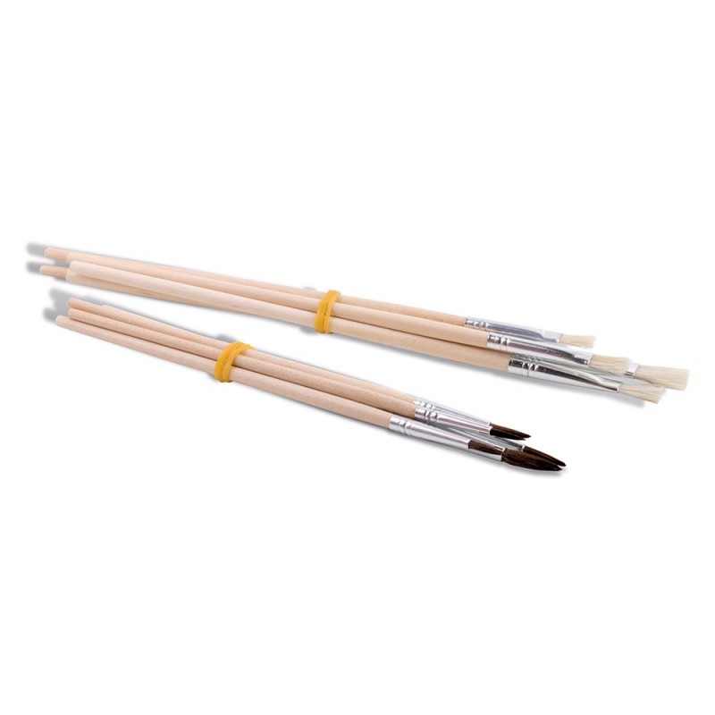 Set de 5 pensule cu varf rotund si 5 pensule cu varf plat, de diferite dimensiuni.