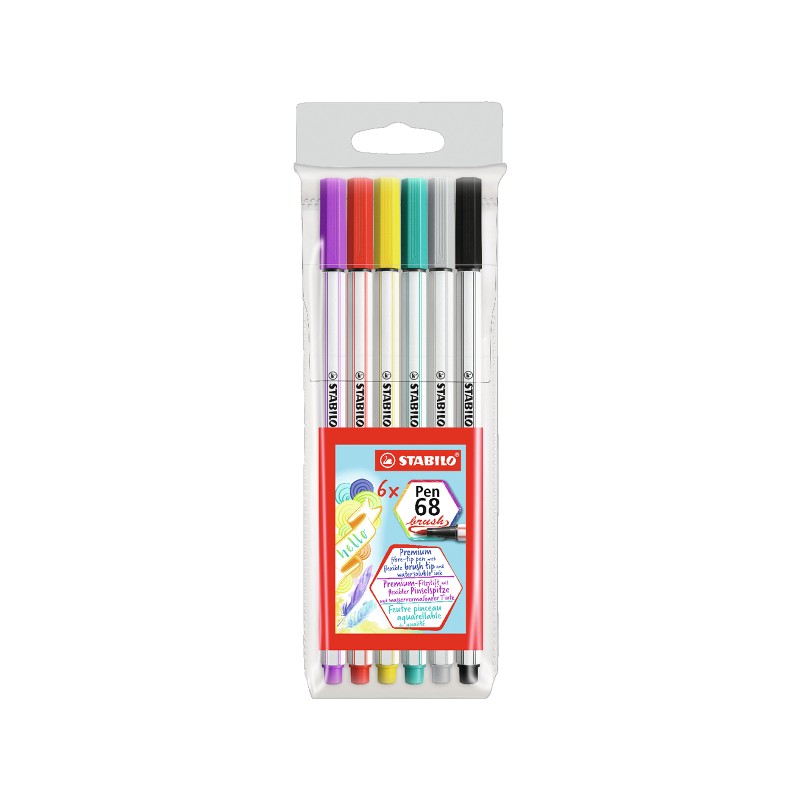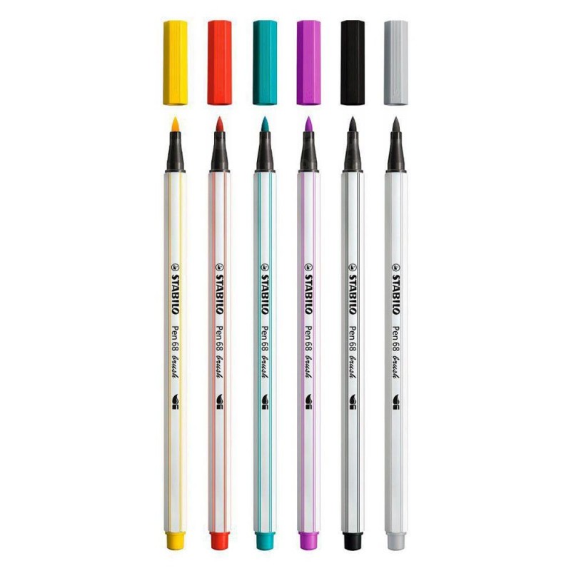 Marker Stabilo 68, varf tip pensula, 6 bucati/set