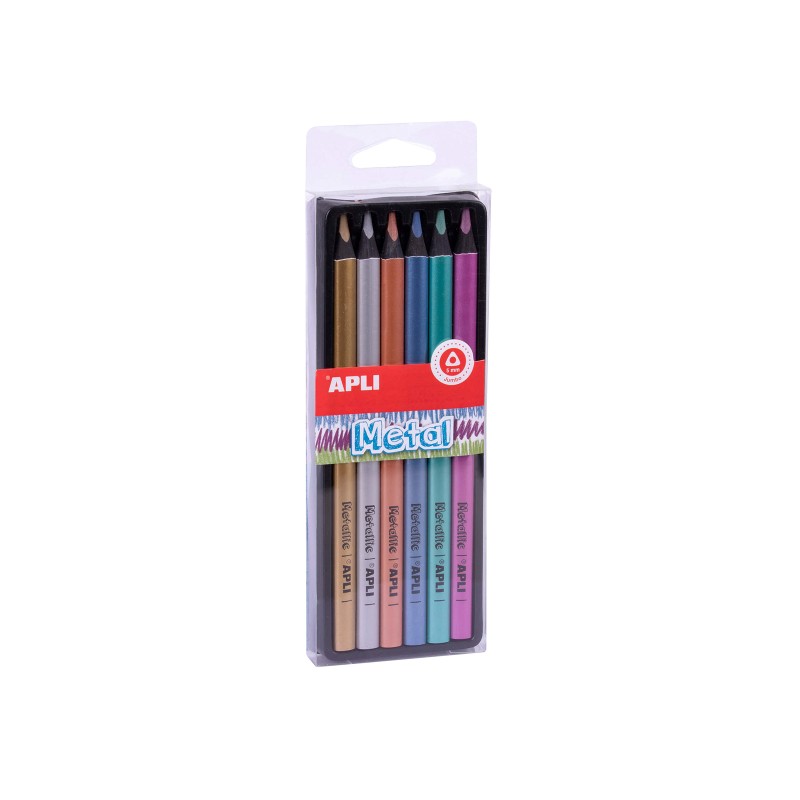 Creioane jumbo metalice. Cutie individuala cu perforatie de prindere. Include 6 creioane jumbo (5 mm) de culori fluorescente asortate: auriu, argintiu, bronz, albastru metalic, turcoaz metalic si violet metalic.