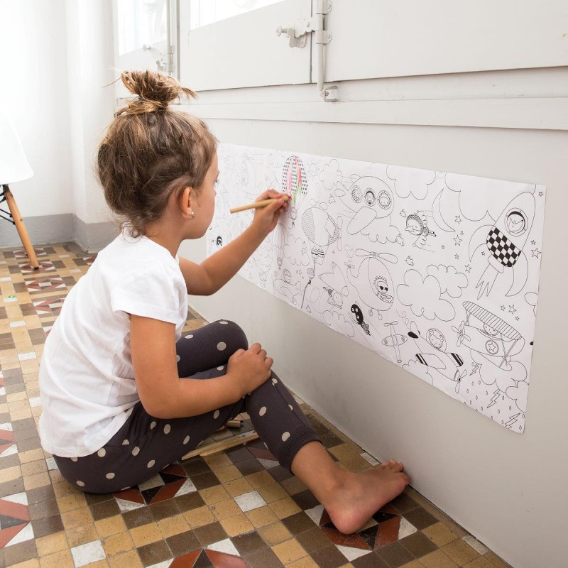 Rulouri de hartie adeziva de lipit si colorat. Rolouri pre-imprimate alb-negru cu modele de pictat si colorat. Fiecare rola are dimensiunea de 30 cm latime x 4 metri lungime, si este realizata din adeziv detasabil pentru a o putea lipi pe podea, pe mobila, pe perete etc. Ideal pentru joaca de grup sau pentru decorarea camerelor copiilor. Valoare educativa ridicata: pictura este una dintre activitatile preferate ale copiilor, cu ea, in plus, acestia dobandesc si imbunatatesc abilitati precum psihomotricitatea, concentrarea, memoria sau creativitatea. Recomandat copiilor de la 3 ani.