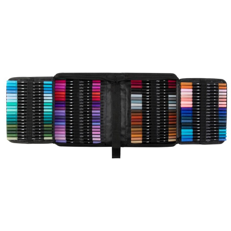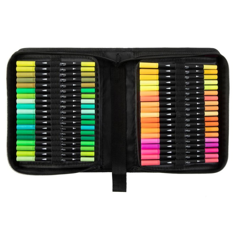 120 x markere cu 2 capete (un varf tip liner de 0.4mm si un varf tip pensula cu varf de pana la 2mm) de culori diverse