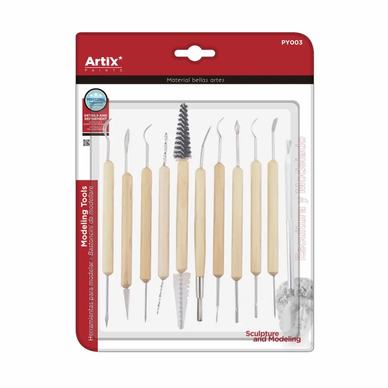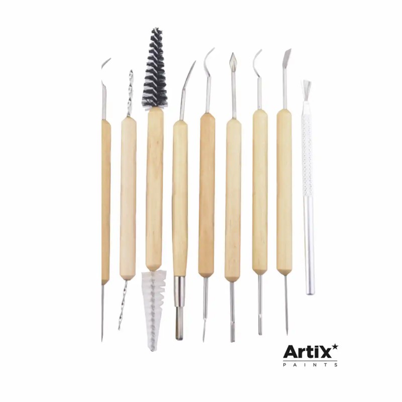 Set complet de unelte pentru modelarea lutului, ideal pentru activitati creative.