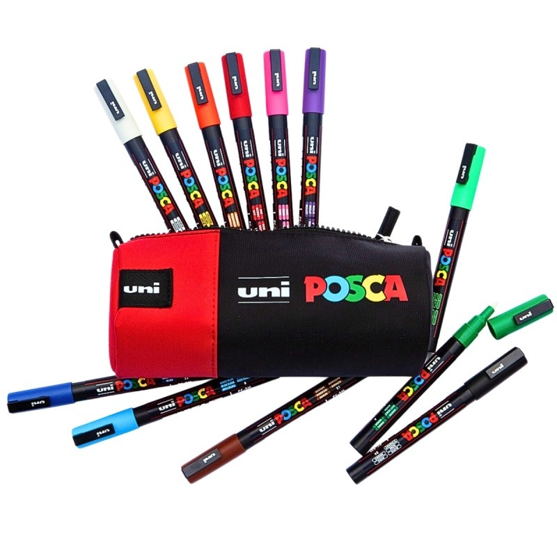 Penar echipat UNI Posca negru cu rosu - Set Complet de Markere pentru Artiști
