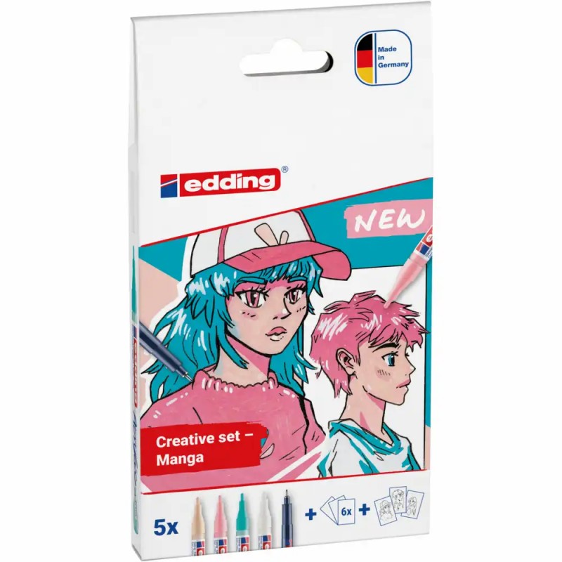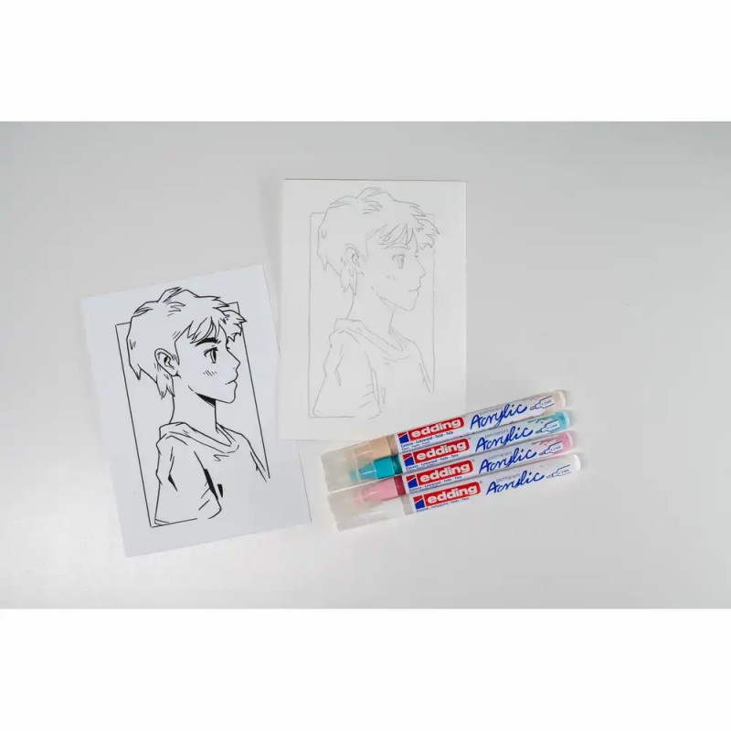Exploreaza lumea fascinanta a anime-urilor cu setul creativ edding 5300/1800 pentru manga. Acest set este perfect atat pentru incepatori, cat si pentru artistii experimentati, oferind o combinatie de markere si accesorii de inalta calitate pentru a-ti transforma creativitatea in realitate. Setul include un fineliner edding 1800 profipen negru pentru contururi precise si patru markere acrilice edding 5300 in nuante vibrante de bej cald, mauve clasic, turcoaz opulent si alb mat.