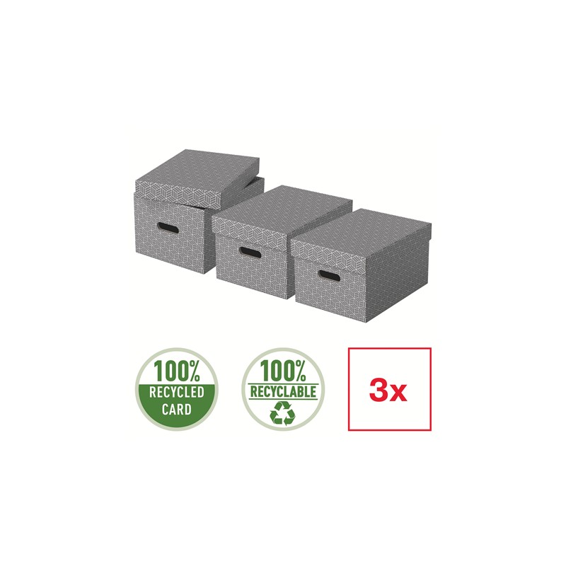 Cutie depozitare Esselte Home Recycled, carton, 36x26x20 cm, cu capac, 3 buc/set, gri