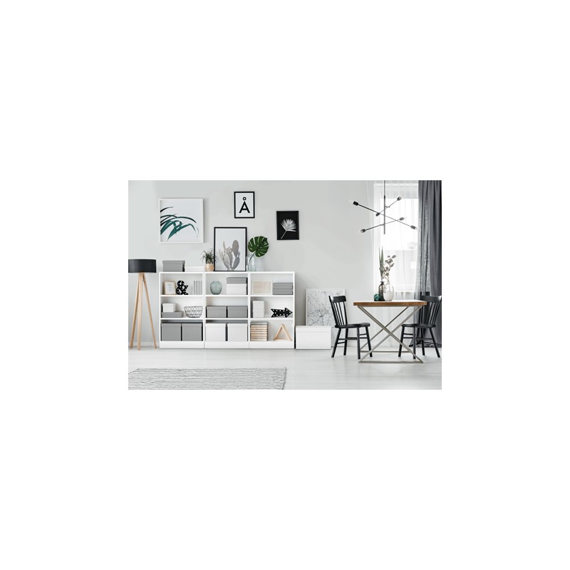 Fiecare cutie are 2 mânere de transport integrate, astfel încât să poată fi transportată cu ușurință din cameră în cameră atunci când este necesar. Fabricata din carton ondulat puternic, 100% reciclat și 100% reciclabil, care este certificat FSC. Suprafața cu ștergere este finisată cu o culoare duala, un design geometric pentru a adăuga stil depozitării dumneavoastră. Ambalajul cutiilor este plat, rapid și ușor de asamblat. Laturile se pliază pe ele însele în timpul asamblarii pentru a oferi rezistență dublă.