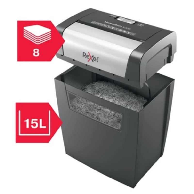 Distrugator documente REXEL MOMENTUM X308, 8 coli, P3, cross-cut (confeti)