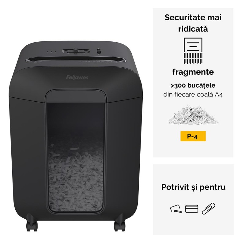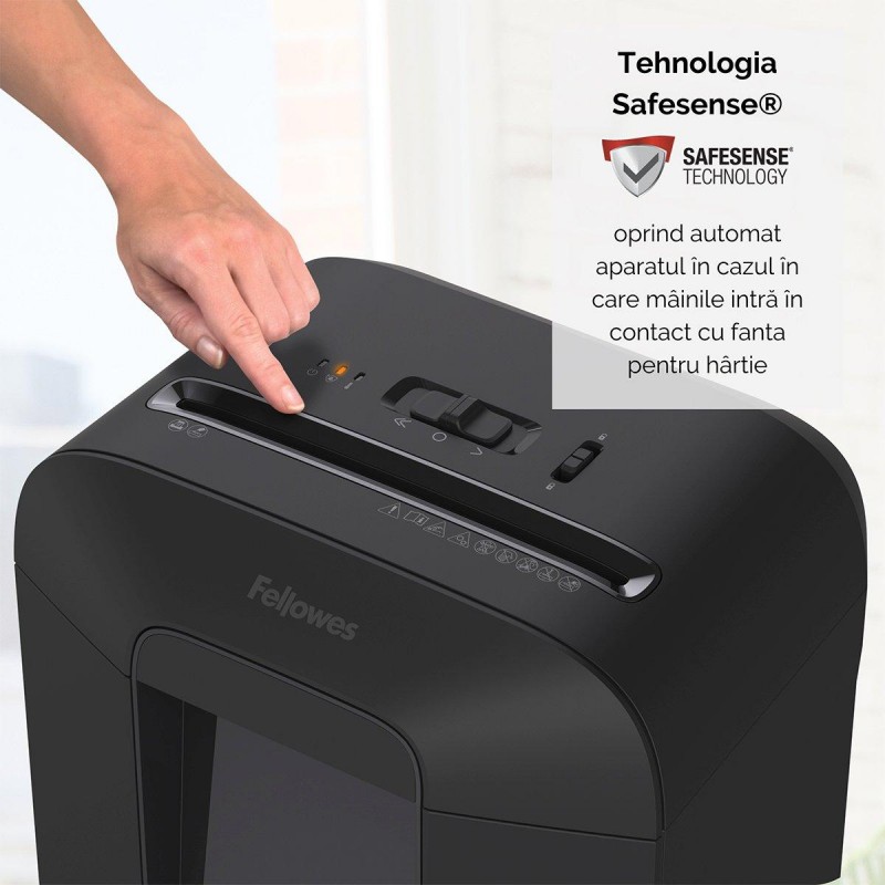 • Tehnologia SafeSense - opreste automat distrugerea cand mainile intra in contact cu fanta de acces documente