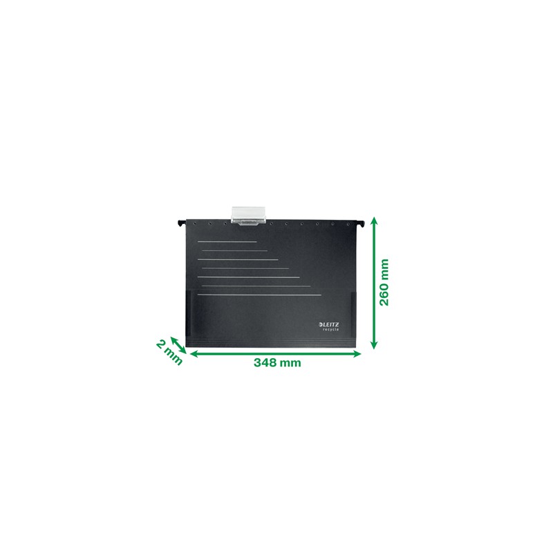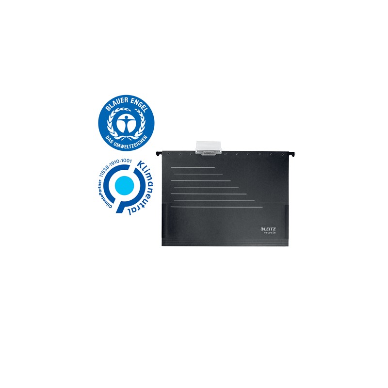 Barele durabile cu cârlige sunt potrivite pentru uz îndelungat, iar suportul pentru etichete inclus permite o utilizare și organizare facilă a documentelor. Dosar suspendabil robust și durabil ce se potrivește perfect cu celelalte produse din gama Leitz Recycle. Produse verzi ce arată grozav în biroul de acasă sau de la muncă. Cu noua gamă Recycle de la Leitz îmbunătățești atât mediul biroului tău, cât și mediul înconjurător.
