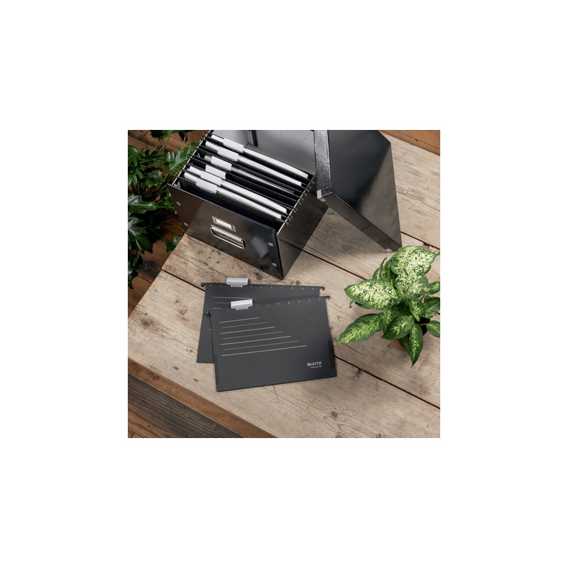 Dosar suspendabil Leitz Alpha Recycle, carton reciclat, A4, cu burduf, negru