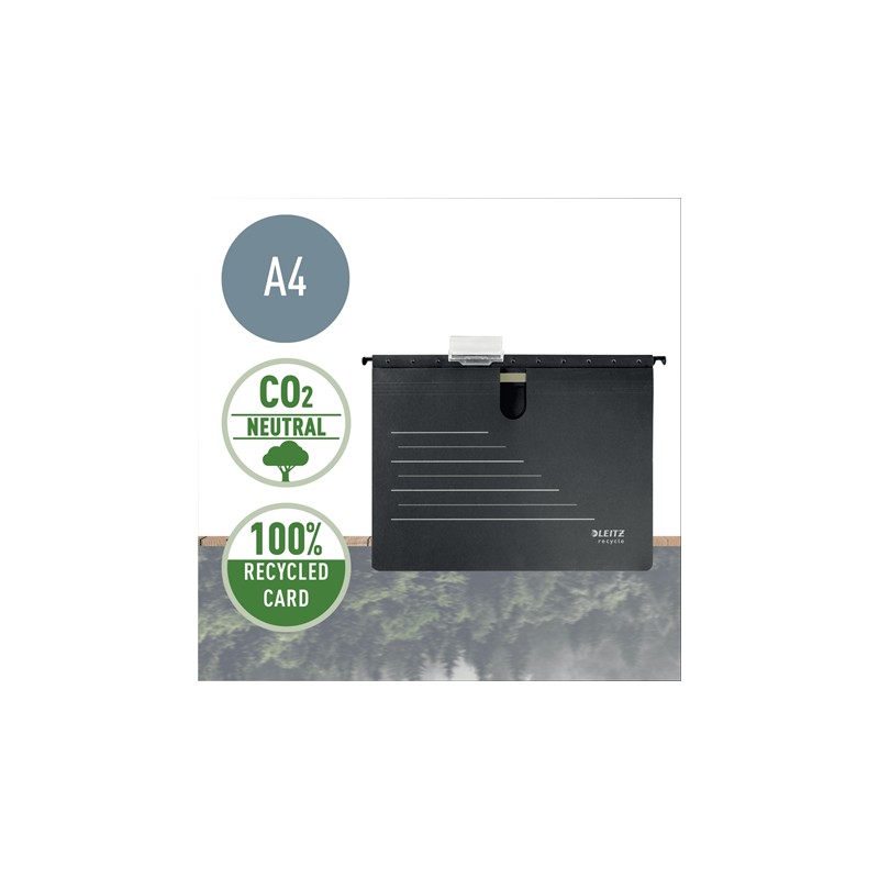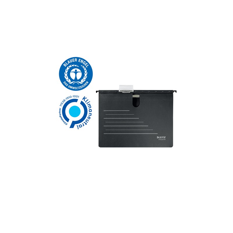 Dosar suspendabil Leitz Alpha Recycle, carton reciclat, A4, cu sina, negru