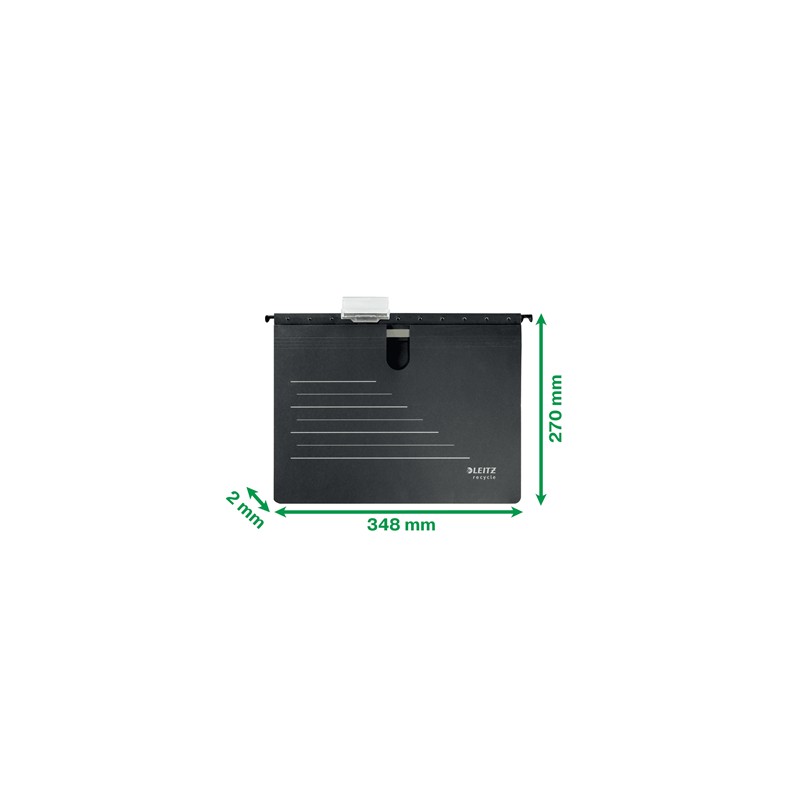 Barele durabile cu cârlige sunt potrivite pentru uz îndelungat, iar suportul pentru etichete inclus permite o utilizare și organizare facilă a documentelor. Dosar suspendabil robust și durabil ce se potrivește perfect cu celelalte produse din gama Leitz Recycle. Produse verzi ce arată grozav în biroul de acasă sau de la muncă. Cu noua gamă Recycle de la Leitz îmbunătățești atât mediul biroului tău, cât și mediul înconjurător.